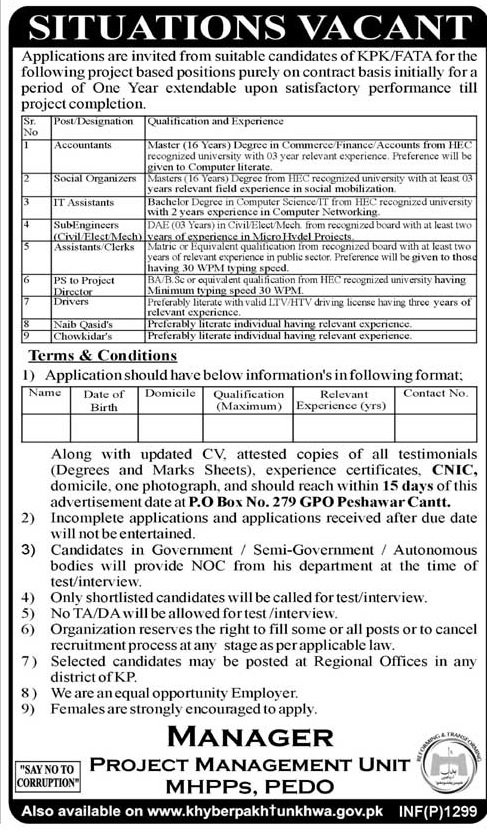 PO Box 279 GPO Peshawar Cantt Jobs 2017 Pakhtunkhwa Energy Development Organization – Paperpk Jobs